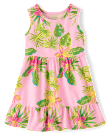 Robe tropicale à volants pour bébé et petite fille - pink