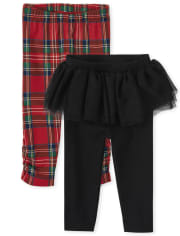 Lot de 2 leggings tutu à carreaux pour bébé fille - black