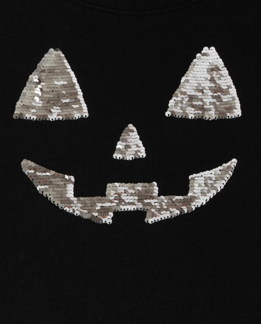 Sweat-shirt tunique assorti pour filles, maman et moi, Halloween, paillettes, citrouille - black